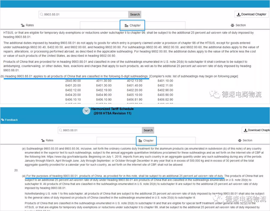 繼續在網頁中查詢“9903.88.01”,這里就明確提及,這一部分的中國產品在適用稅率基礎上再加25%。